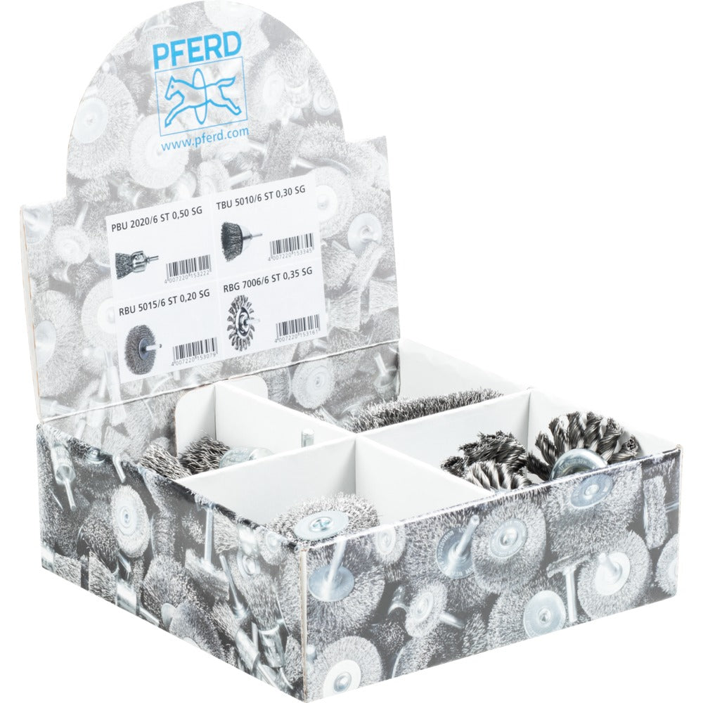 Set med olika cirkulär-, skål- och ändborstar med 6 mm-skaft.