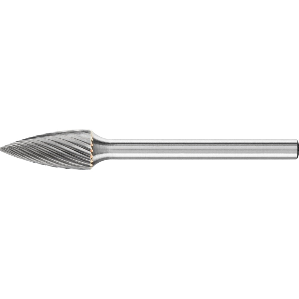 Spetsformad fil enligt DIN 8032 med tandning enligt DIN 8033, planad spets. GL = totallängd (homogen hårdmetall) SL = skaftlängd (långt stålskaft)