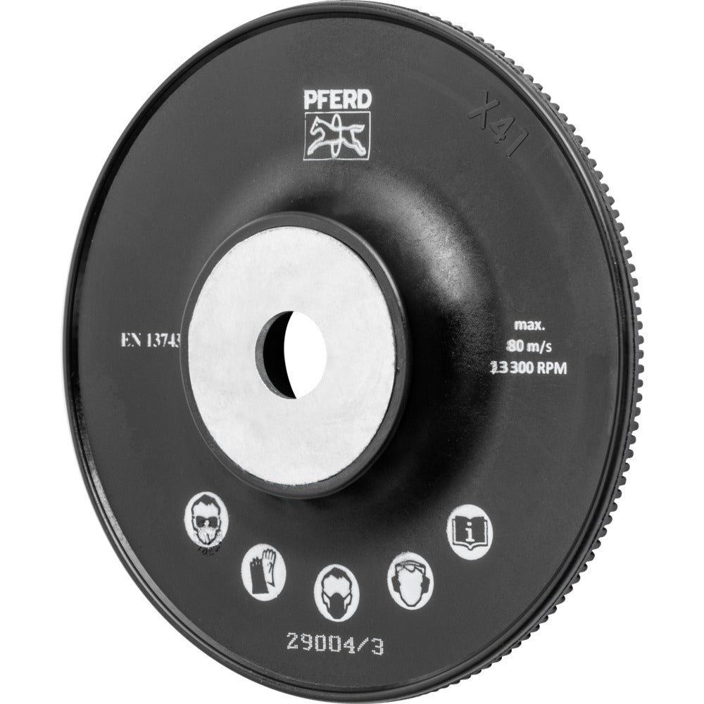 Högprestanda-stödrondell för användning av fiberrondeller på vanligt förekommande vinkelslipmaskiner. Fördelar: Nötningsbeständig glasfiberförstärkt plast garanterar bra livslängd Speciellt kall slipning genom radiellt anordnade kylflänsar Genom det stabila, styva utförandet ger fiberrondellerna hög avverkning