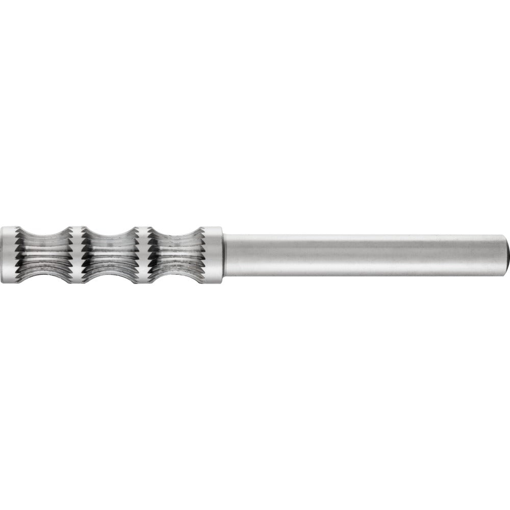 Tre områden med identiskt lika tandning gör att HSS kantfilar kan användas tre gånger så länge. Cylindrisk fil med trippel tandning, konkav kontur i specialtandning med skaftdiameter 6 mm. För kantbrytning med definierad radie.