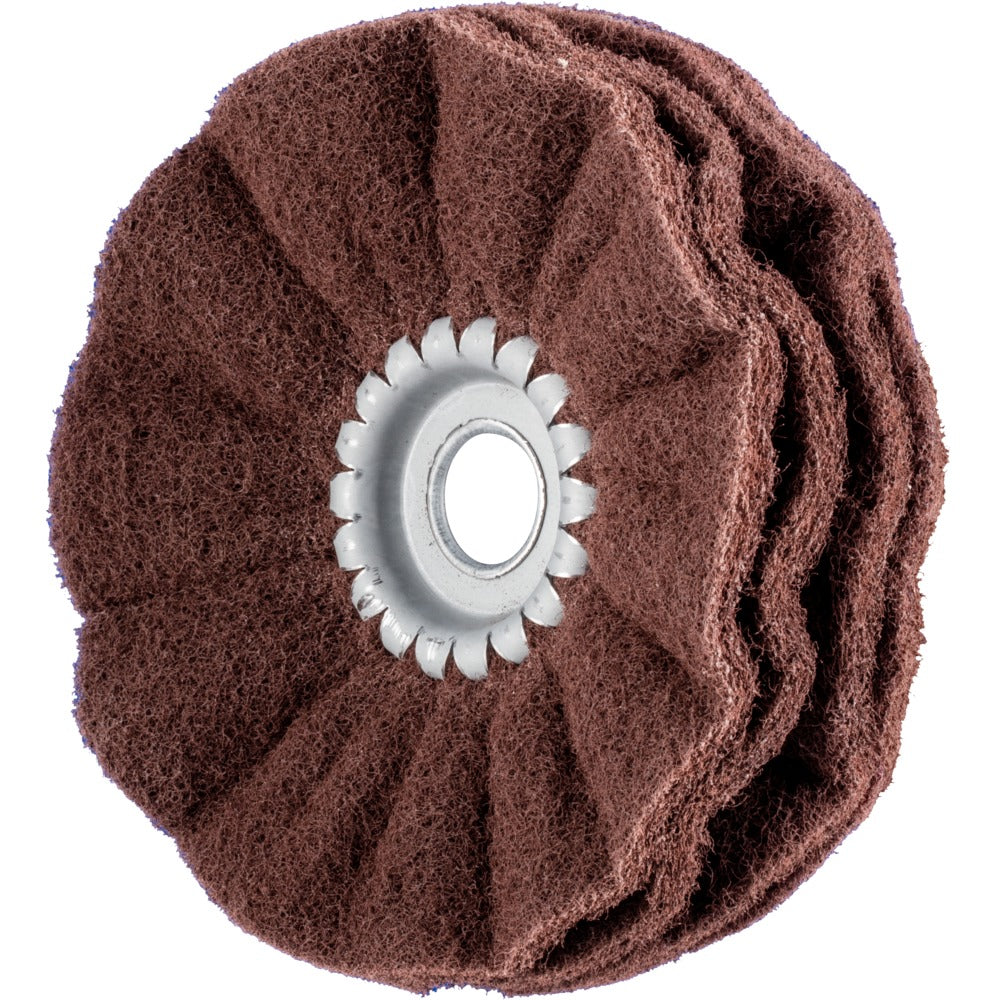 De lätt vågformade nylonlamellerna är monterade runt ett centrum av metall. Det öppna utförandet och nylonmaterialets höga flexibilitet gör att skivan anpassar sig utmärkt efter konturer. Detta gör det möjligt att streckmattera ytor, profiler och rör, utan synliga övergångar.