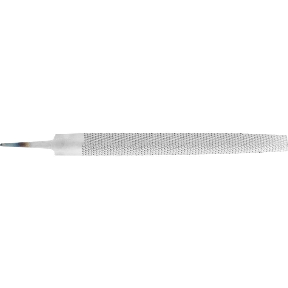 Halvrund fil, avsmalnande form, med rasphuggning på två sidor. Form C enligt DIN 7263. Med tånge.