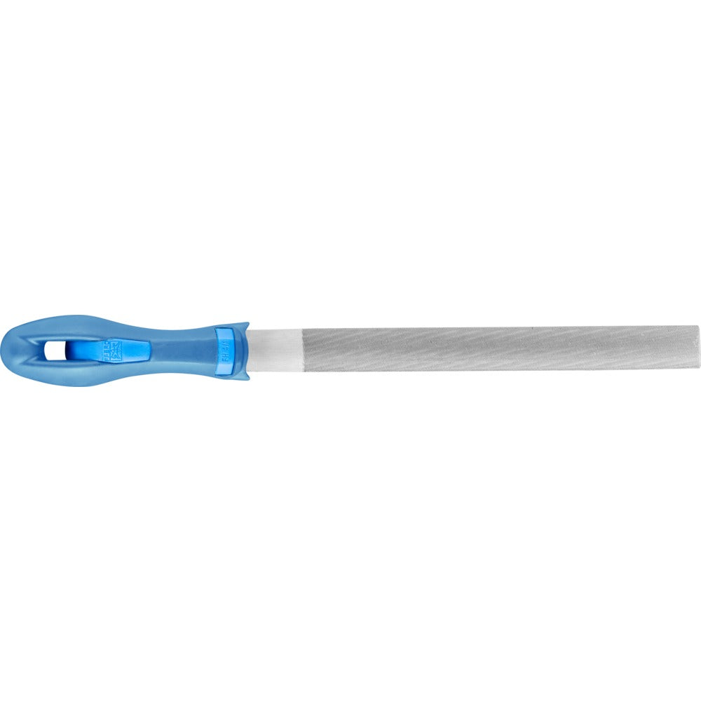 Halvrund fil med huggning på två sidor. Med tånge. Form E enligt DIN 7261. För bearbetning av radier och filning av halvrunda profiler.