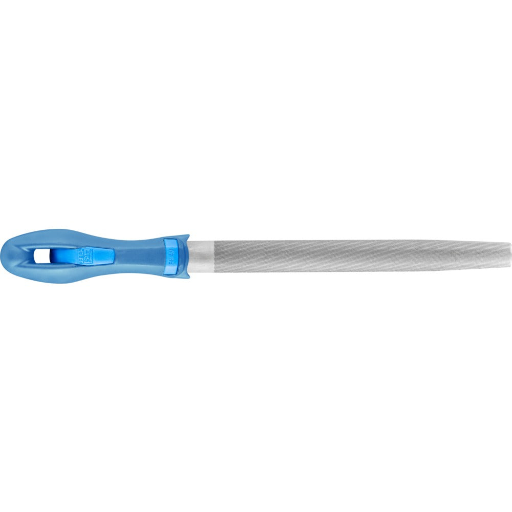 Halvrund fil, avsmalnande form med huggning på två sidor. Med tånge. Form E enligt DIN 7261. För bearbetning av radier och filning av halvvrunda profiler.