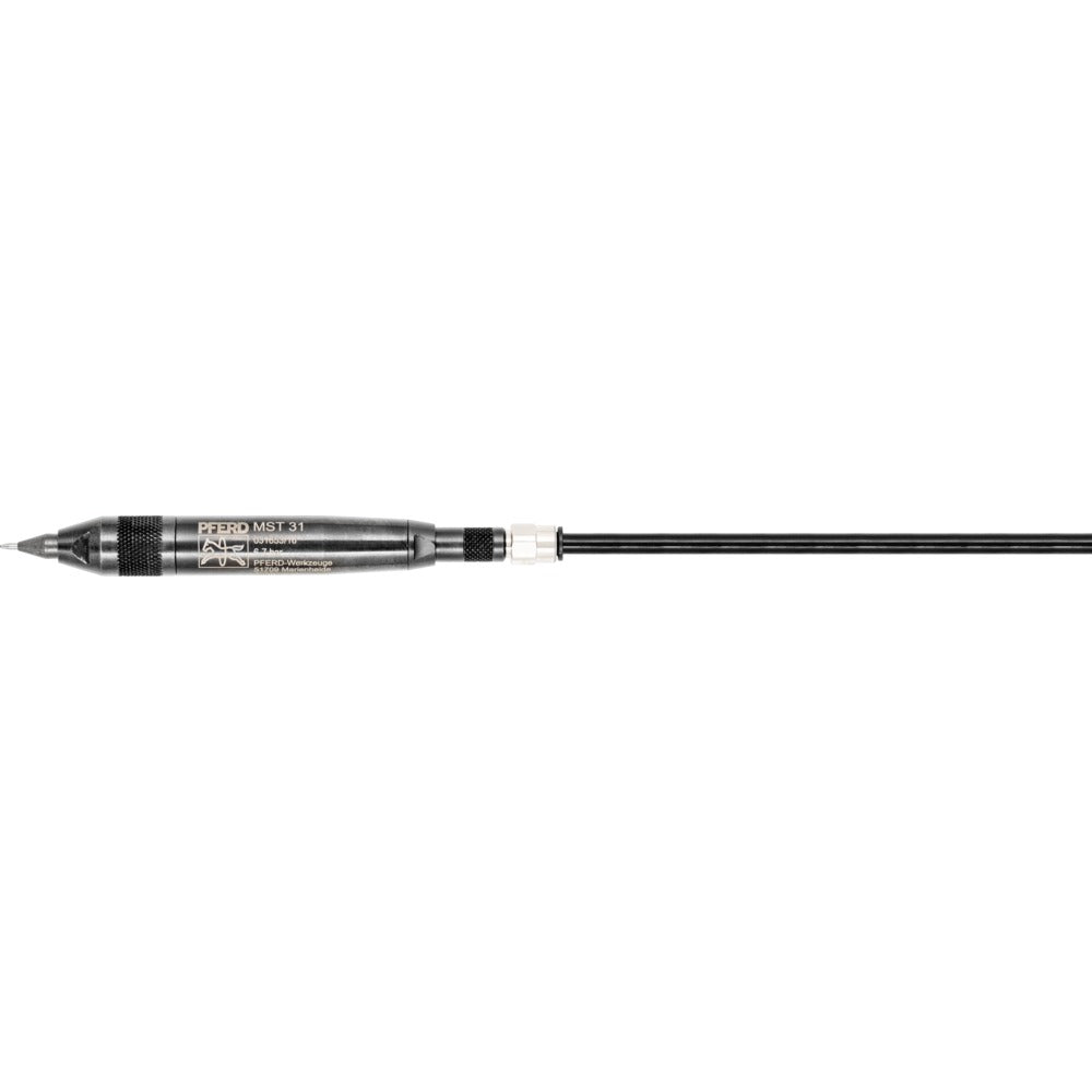 Prestanda: Mycket hög slagfrekvens. För märkning på metall, glas, plaster, och även på härdat verktygsstål (nåltjocklek fin). Ingår: 2 m tilluftsslang med yttergänga 1/4” och slangnippel med gänga (STGI), hårdmetall-gravyrnål.