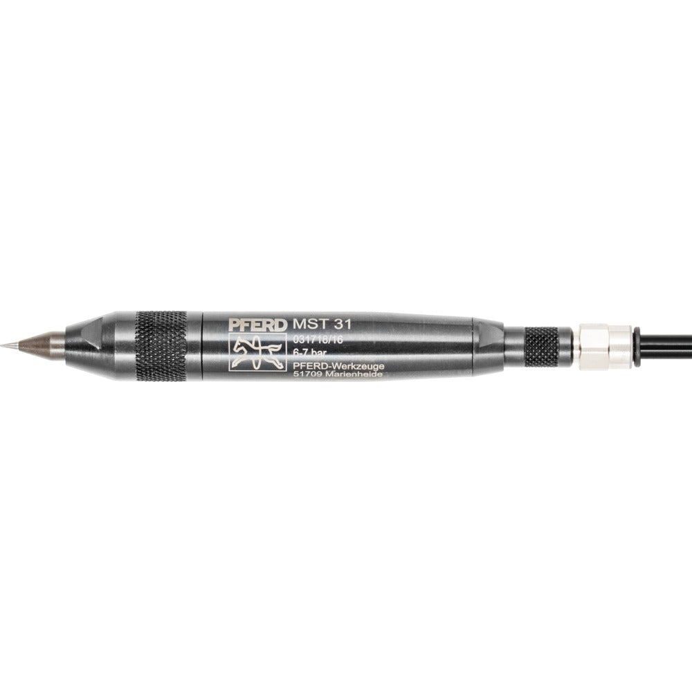 Prestanda: Mycket hög slagfrekvens. För märkning på metall, glas, plaster, och även på härdat verktygsstål (nåltjocklek fin). Ingår: 2 m tilluftsslang med yttergänga 1/4” och slangnippel med gänga (STGI), hårdmetall-gravyrnål.